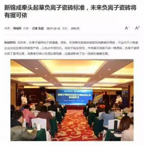 陶瓷一線品牌享譽陶瓷12月12日,由新錦成產業集團牽頭制定的《負離子陶瓷磚定義及應用》和《負離子陶瓷磚健康價值等級劃分和標識》國家行業標準立項啟動儀式“來襲兇兇”,現場吸引了新浪家居、騰訊家居、網易家