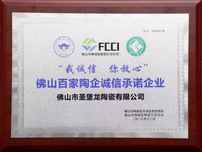 唯有誠信贏市場|圣堡龍陶瓷獲“佛山百家陶企誠信承諾企業”大獎佛山百家陶企誠信承諾企業2018年1月5日,第七屆中國(佛山)陶瓷發展年會在佛山南莊舉行,中國貿促會商業分會名特優產品發展中心、佛山市發展和