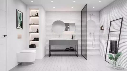 衛生間瓷磚怎么配色。本來考慮到衛生間采光,打算地面黑其它全白,后來又想在馬桶后面做個色,如果做一面墻又感覺到有點突兀。衛生間配色其實有很多種方案的,一般做純色的、深色的比較多。因為衛生間水分大,人來人