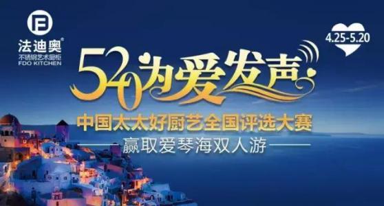 經過精心籌備,「520法迪奧為愛發聲——中國太太好廚藝」全國海選大賽即將拉開帷幕!據悉,「中國太太好廚藝全國評選大賽」由零甲醛健康廚柜倡導者法迪奧主辦,該大賽面向廣大中國家庭,旨在通過為中國太太們搭建