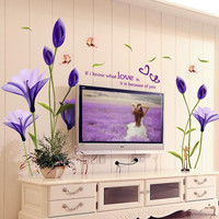 溫馨床頭墻壁貼紙餐廳客廳電視背景墻紙貼畫紫色百合,浪漫墻貼,家里有這樣的一款墻貼,特別浪漫有情調,簡約時尚,優雅大方餐客廳臥室玄關電視背景墻創意裝飾家居3D亞克力立體水晶墻貼,不易脫落,不易掉皮,擺在