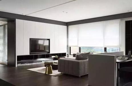 本案主人喜歡簡約的家居生活。設計師根據主人喜歡以及居室空間特點,設計出這種簡單大氣的簡約風格。電視背景墻采用布藝壁紙,四周石膏線框邊。沙發背景墻選用水墨畫,彰顯意境。兩側實木鏤空隔斷映襯出別樣效果。客
