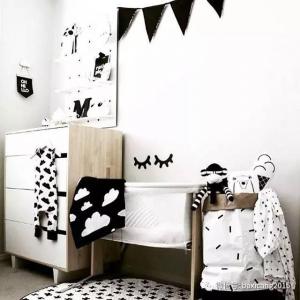 除了方形抱枕三角形抱枕也挺可愛的店主說自己特別喜歡小旗子黑白色可愛的三角旗用來裝飾墻面正反兩面都可以使用哦掛在墻面的布袋實用與裝飾兩不誤店主自家的裝飾連同床單被套平時使用的簍子也都是黑白色的雖然只是兩
