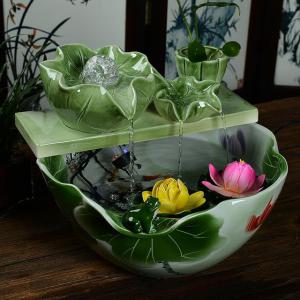 流水器陶瓷噴泉霧化加濕器客廳風水十分重要,不能隨便亂擺放東西。在客廳里,放一個風水輪招財魚缸,寓意良好深遠,能夠改善你家客廳的風水,財氣和運氣都會相繼而來,遇事也會更順心。流水器陶瓷噴泉霧化加濕器客廳